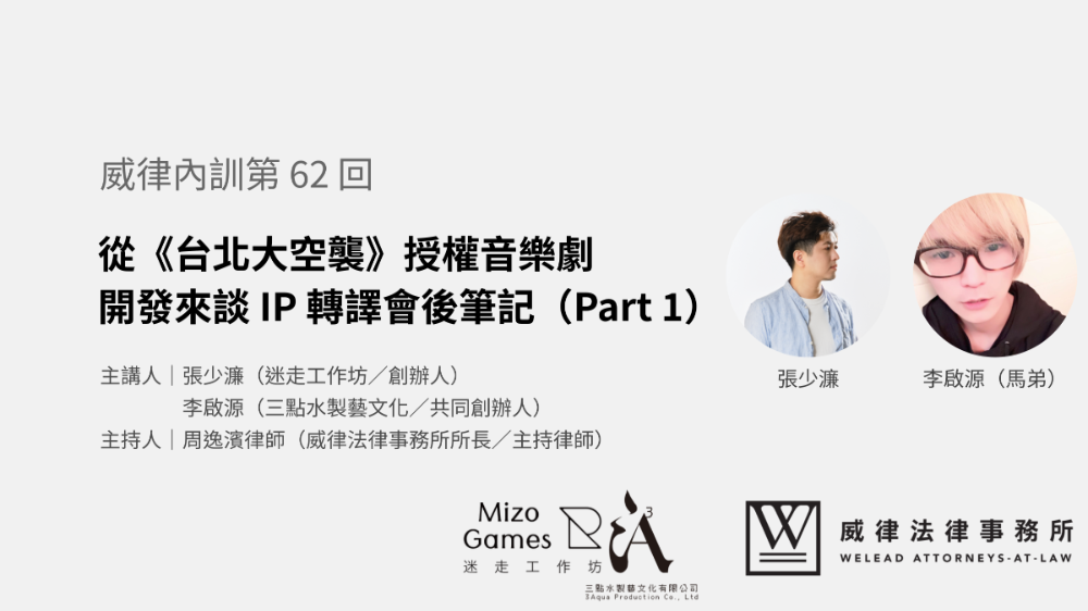 威律內訓第 62 回──從《台北大空襲》授權音樂劇的開發來談 IP 轉譯會後筆記(Part 1)