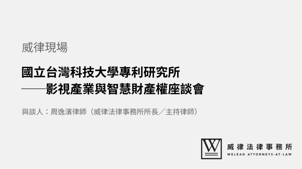 感謝國立台灣科技大學專利研究所邀請本所所長周逸濱律師擔任與談嘉賓,於座談會中與大家分享,國際串流平台對於智慧財產權利鍊的影響。