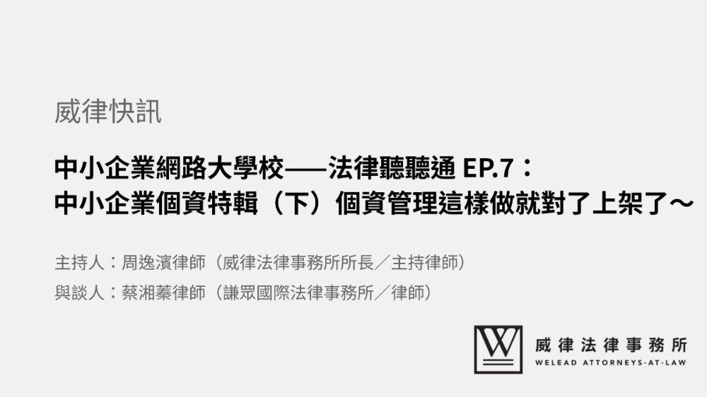 經濟部中小及新創企業署今年推出企業法規線上課程,並邀請榮譽律師與相關領域專家,協助中小企業解答經營上常見的法規問題。