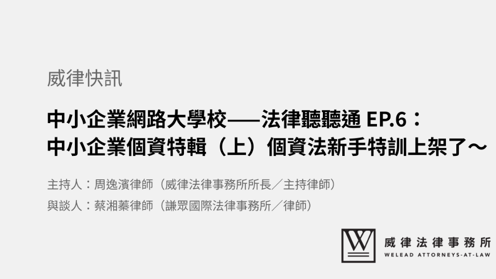 經濟部中小及新創企業署今年推出企業法規線上課程,並邀請榮譽律師與相關領域專家,協助中小企業解答經營上常見的法規問題。
