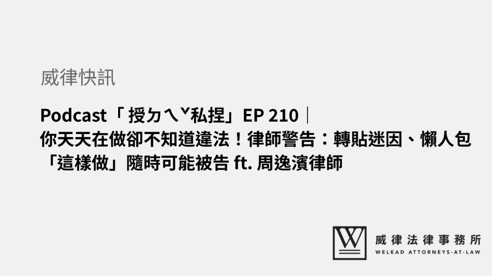 Podcast「 授ㄉㄟˇ私捏」EP 210|你天天在做卻不知道違法!律師警告:轉貼迷因、懶人包「這樣做」隨時可能被告 ft. 周逸濱律師
