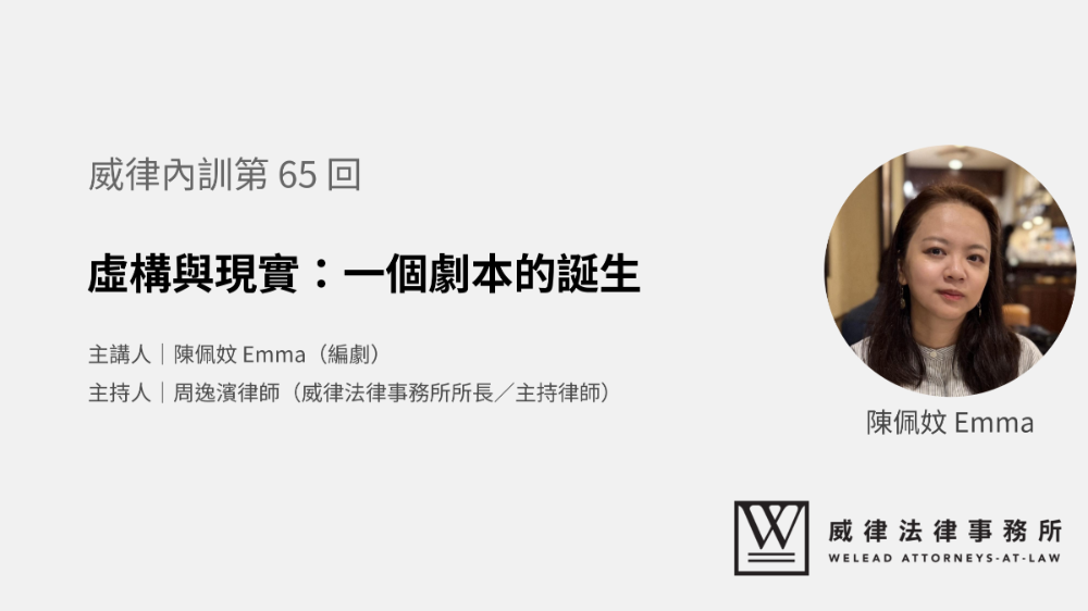 本次內訓,我們非常榮幸邀請到編劇陳佩妏擔任講師,分享劇本創作背後的真實旅程。她將以多年實務經驗,帶領大家深入探索劇本的誕生過程,探討從原創開發、承攬委託,到編劇合約談判所可能面臨的挑戰。