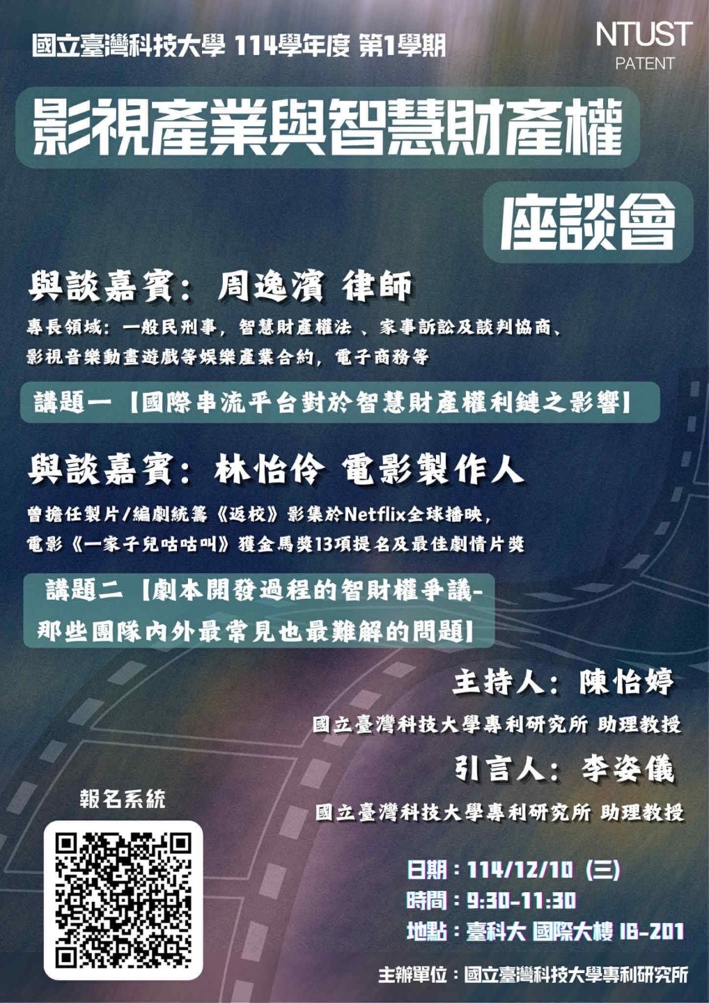#國立台灣科技大學專利研究所 #周逸濱律師