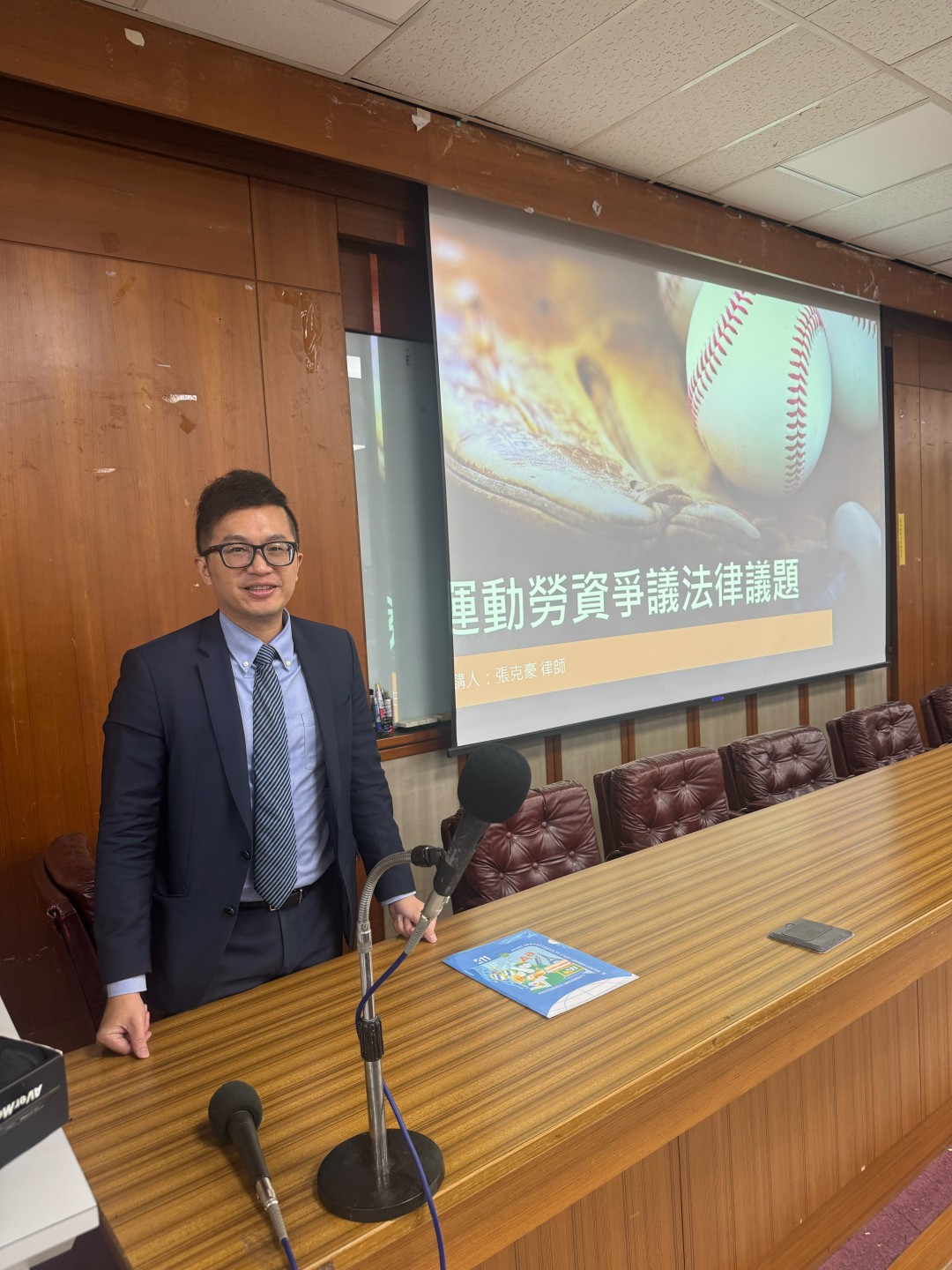 感謝中華民國體育運動總會邀請本所所長周逸濱律師、張克豪律師擔任講師,分別以運動行銷的智慧財產權,以及勞資爭議為主題,與教練及裁判們交流。