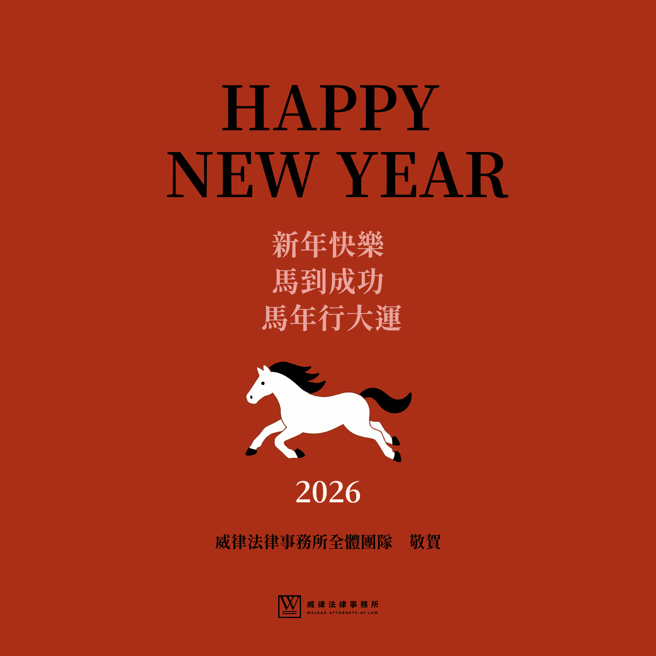 威律法律事務所祝各位粉絲、朋友們,新年快樂!